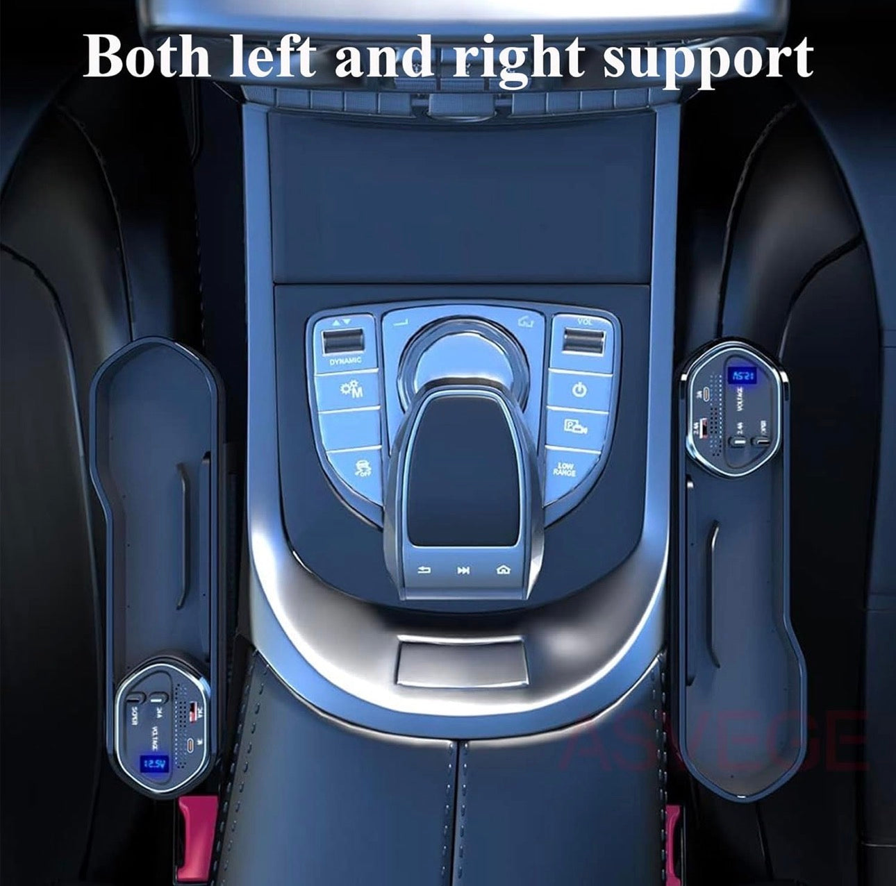 MoonGap™ Car Seat Gap Filler with Wireless Charger,2 USB Ports and 2 Retractable Charging Cable of Type C, iOS, Multifunctional Storage Box with Cup Holder Cigarette Lighter Quick Charge.